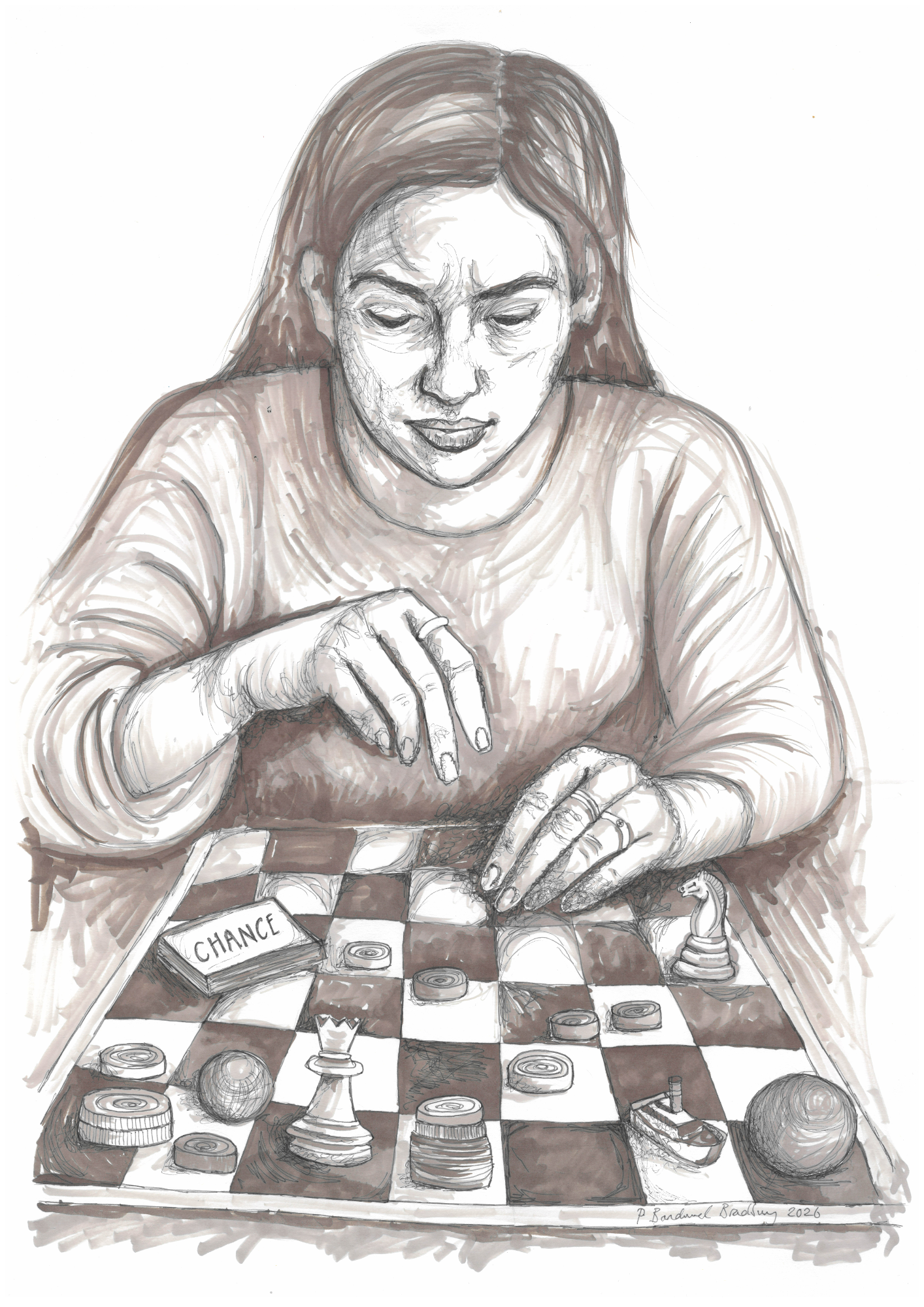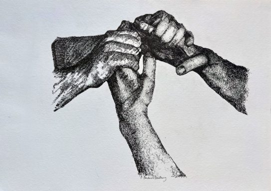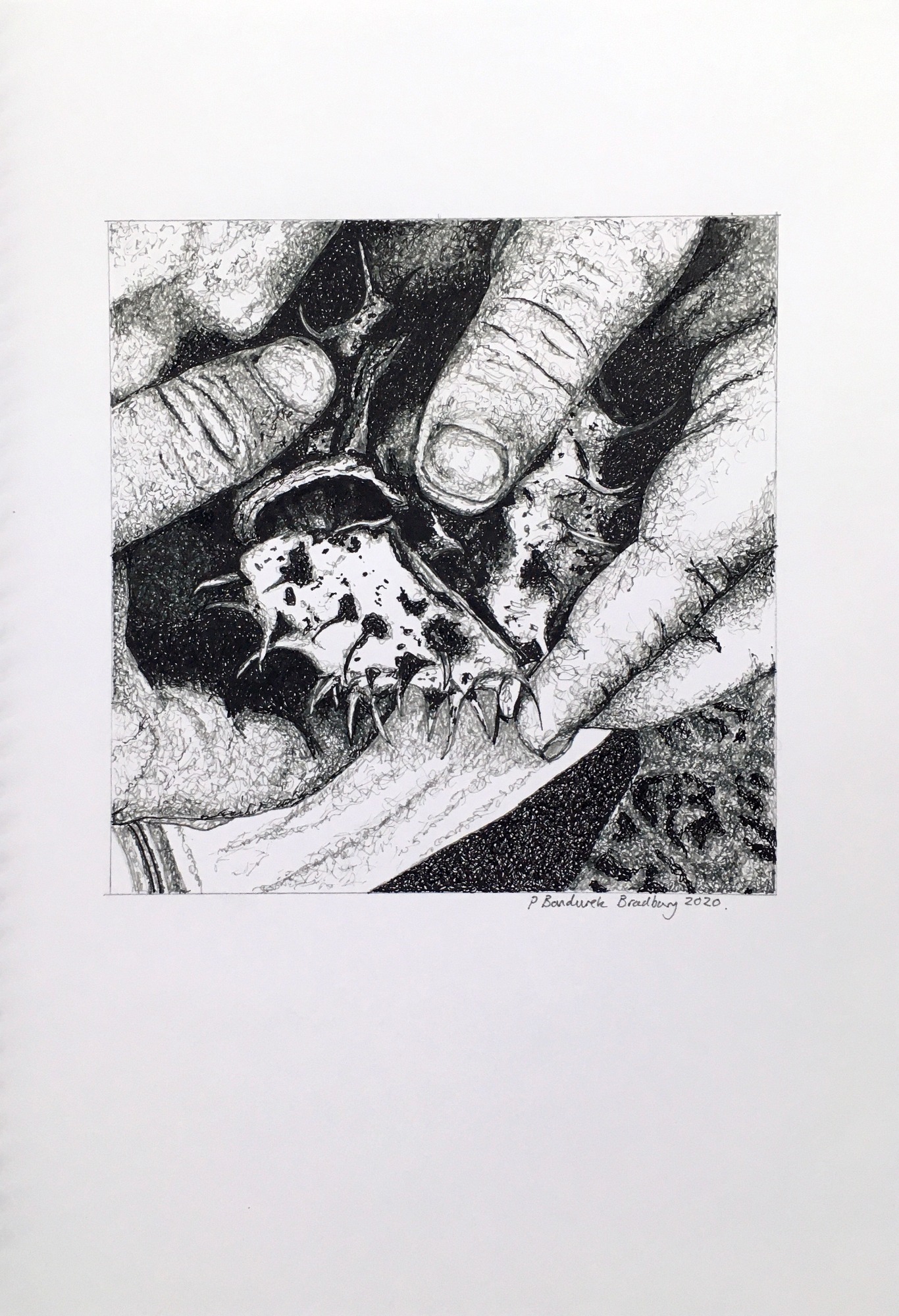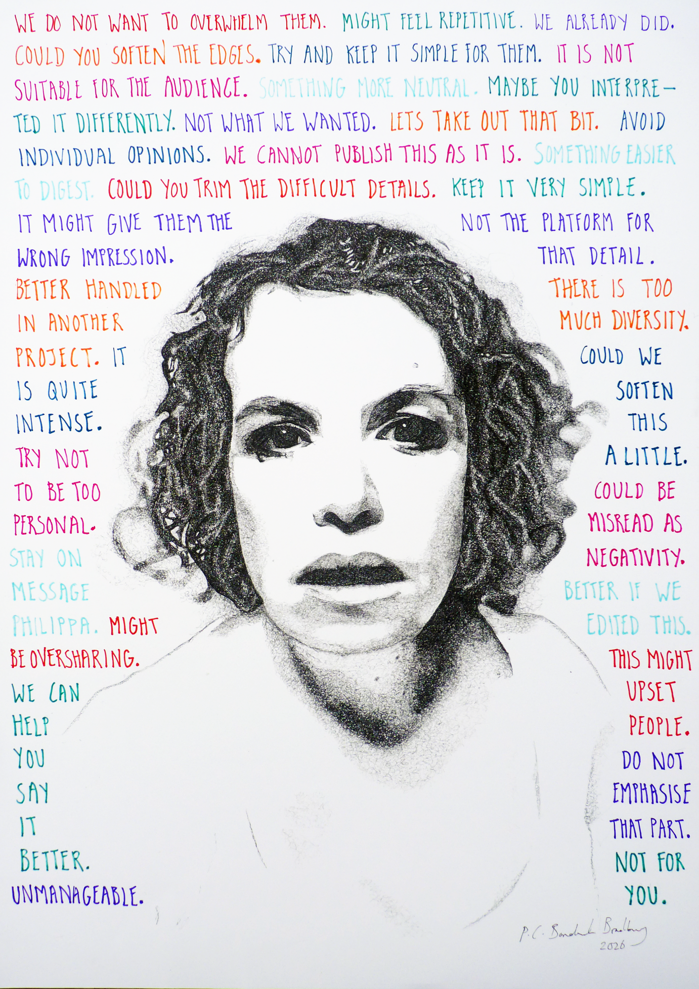 These works move between original drawings and interventions in print, using ink to examine voice, control and the structures that shape participation.